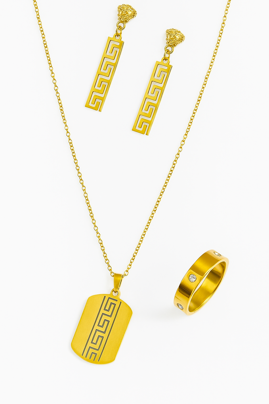 The Bloom Combo Set features exquisite 18K gold plating over pure stainless steel, ensuring durability and a lasting shine. Crafted from 100% anti-tarnish material, this set maintains its smooth, excellent finish over time. With a guaranteed color retention, it offers both elegance and resilience, making it a reliable choice for sophisticated jewelry lovers.